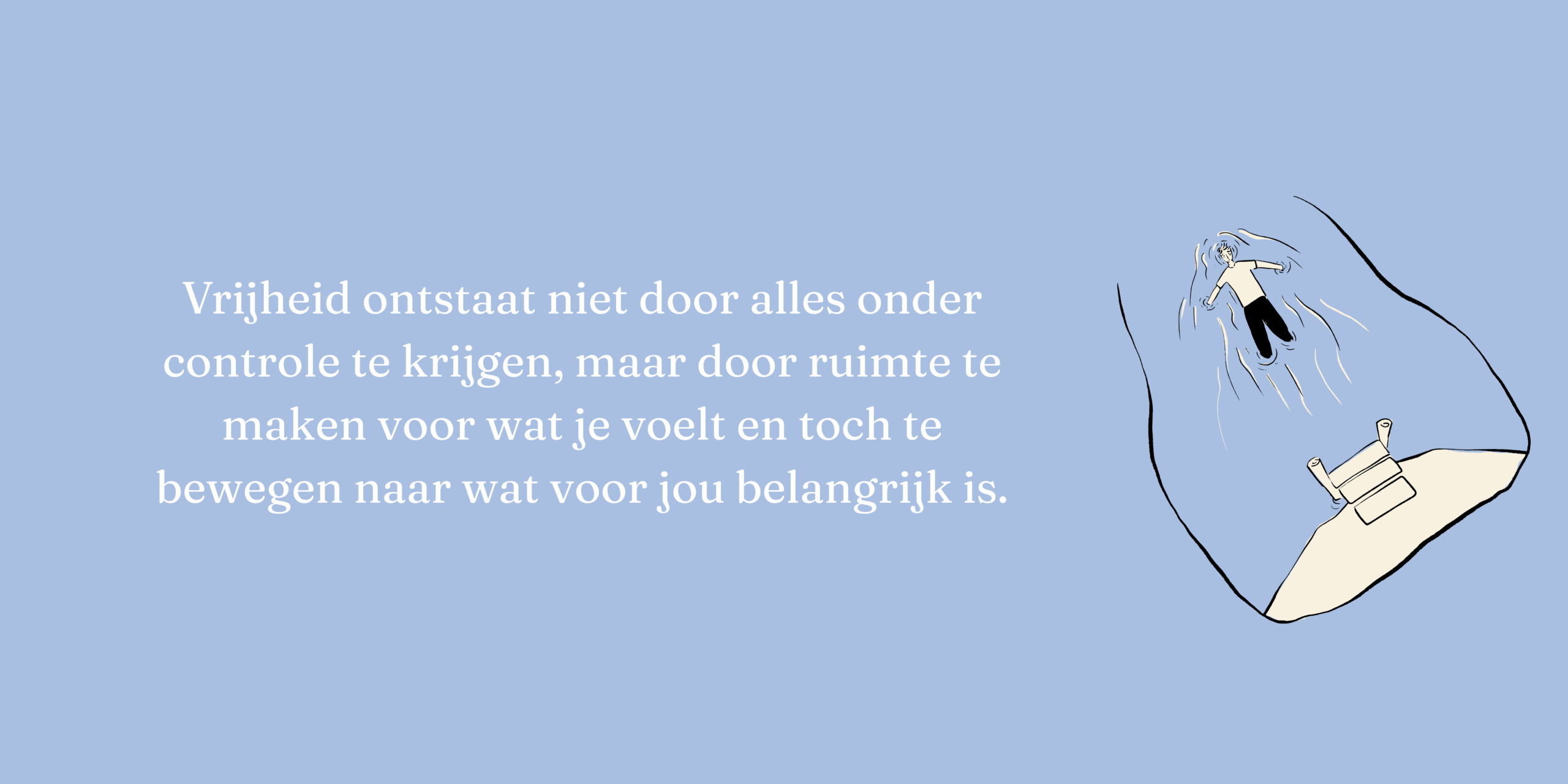 Vanuit de visie van Acceptance and Commitment Therapy (ACT) zien we dat juist in het toelaten van gevoelens, gedachten en oordelen ruimte ontstaat voor groei. Niet door het verleden te ontkennen, maar door het te dragen met mildheid. Door stil te staan bij pijn, rouw en onzekerheid, kan er een nieuwe verbinding ontstaan met wat werkelijk belangrijk is — je eigen waarden, verlangens en richting.